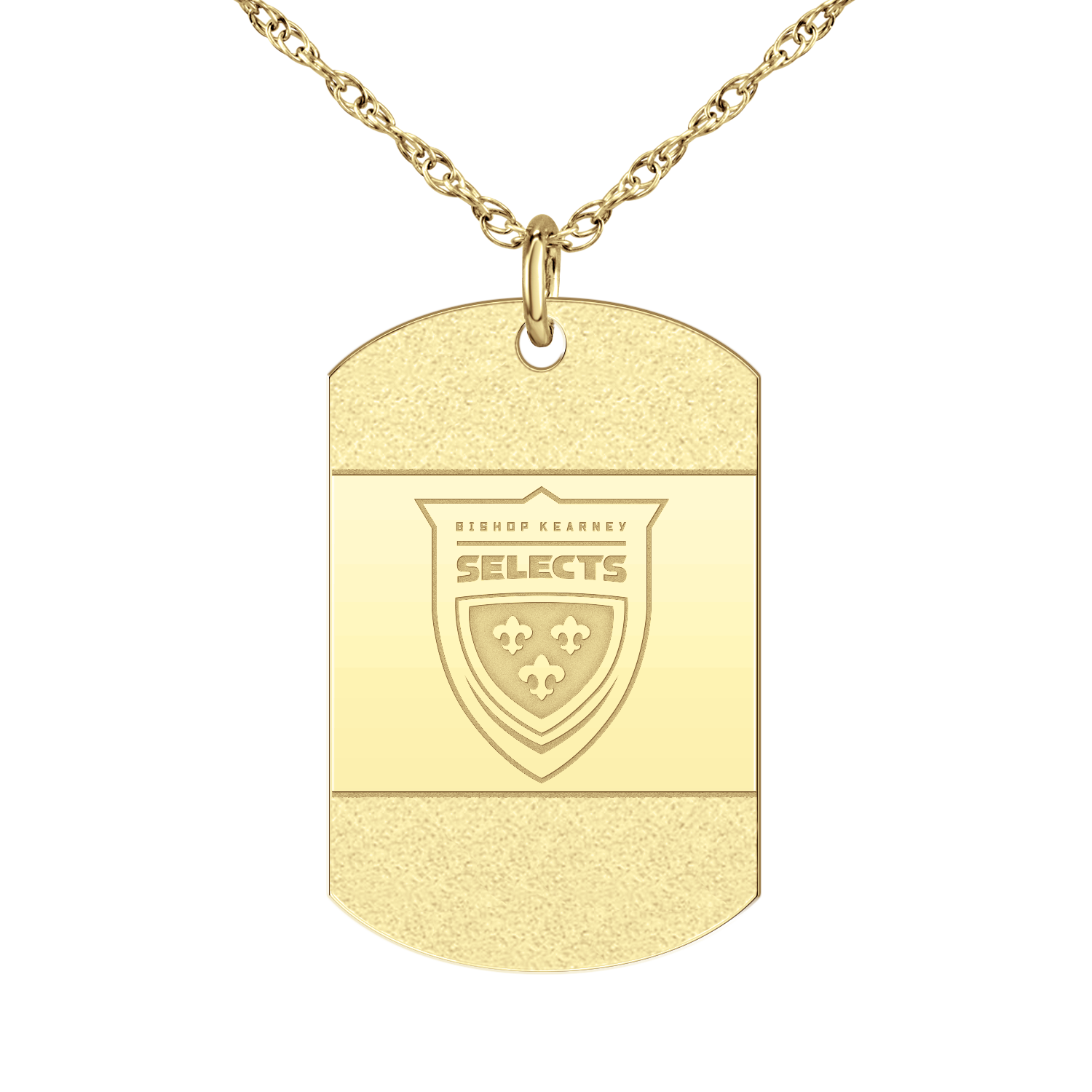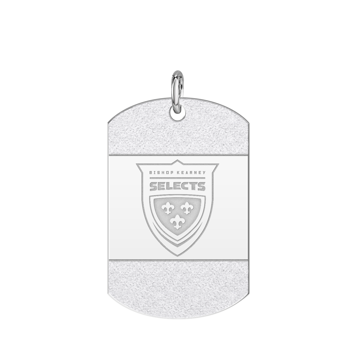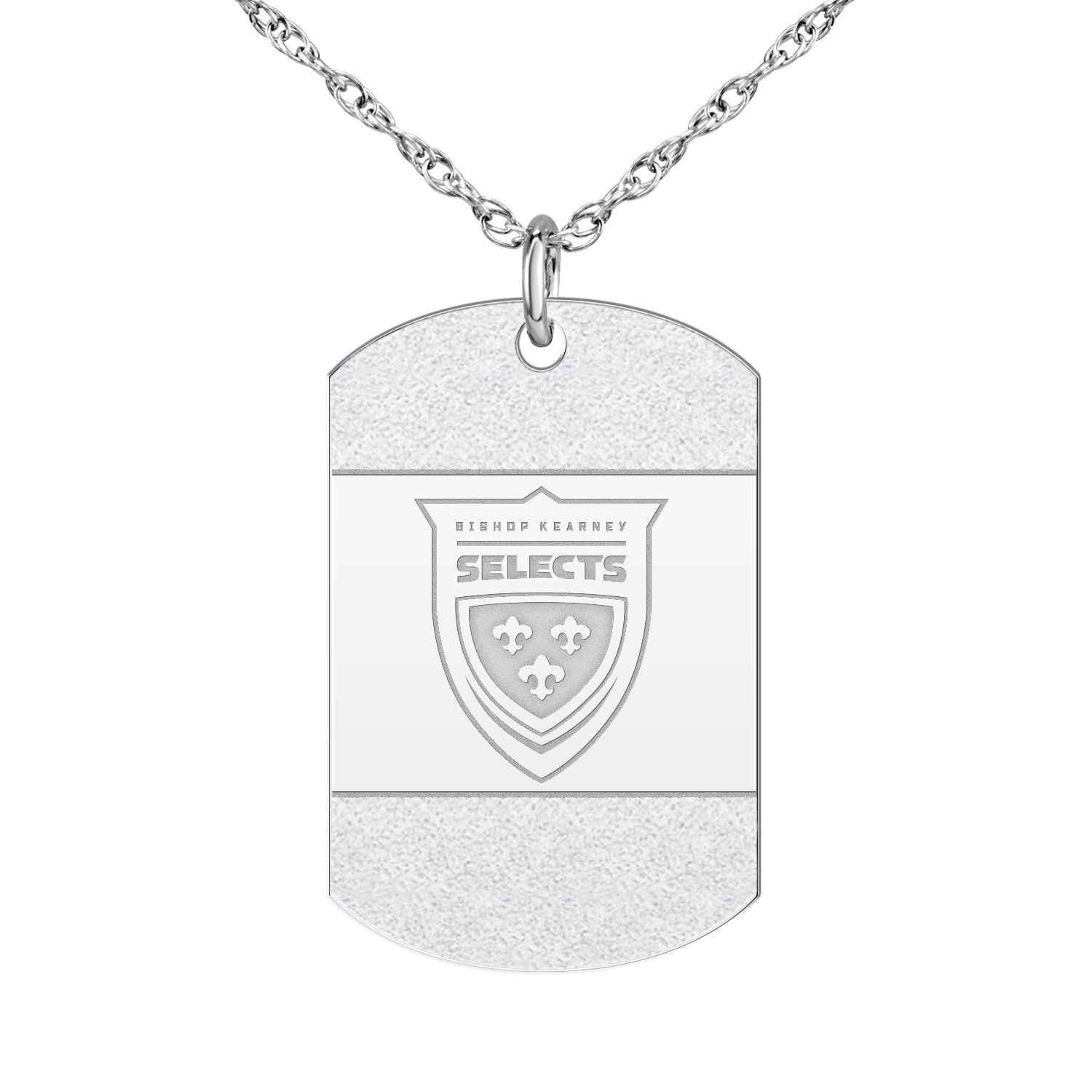 Beautifully finished with an "iced" accent on the front, personalize the high polish back of this tag with your name, title, player number etc.! Make it yours. Up to 4 lines of engraving on the back.