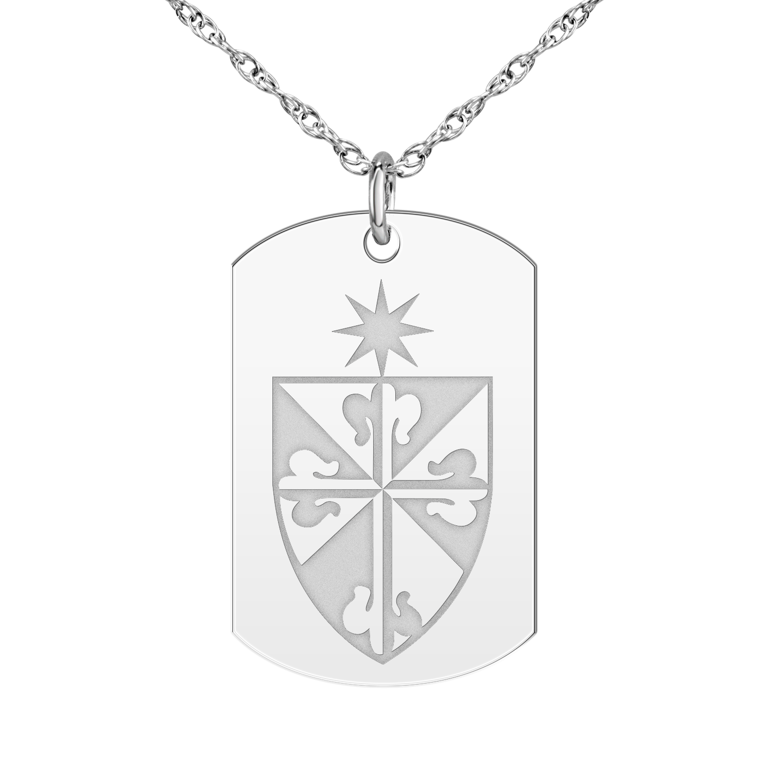 Available in your choice of silver (white, yellow, or rose gold plating), 10k gold (white or yellow), or 14K gold (white, yellow, or rose). Measures approximately 0.78"x1.22". Choose from a variety of chains. More chains available here.