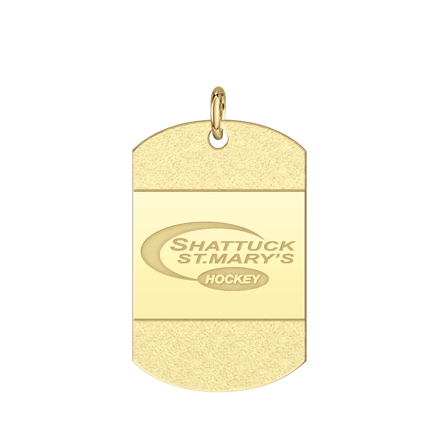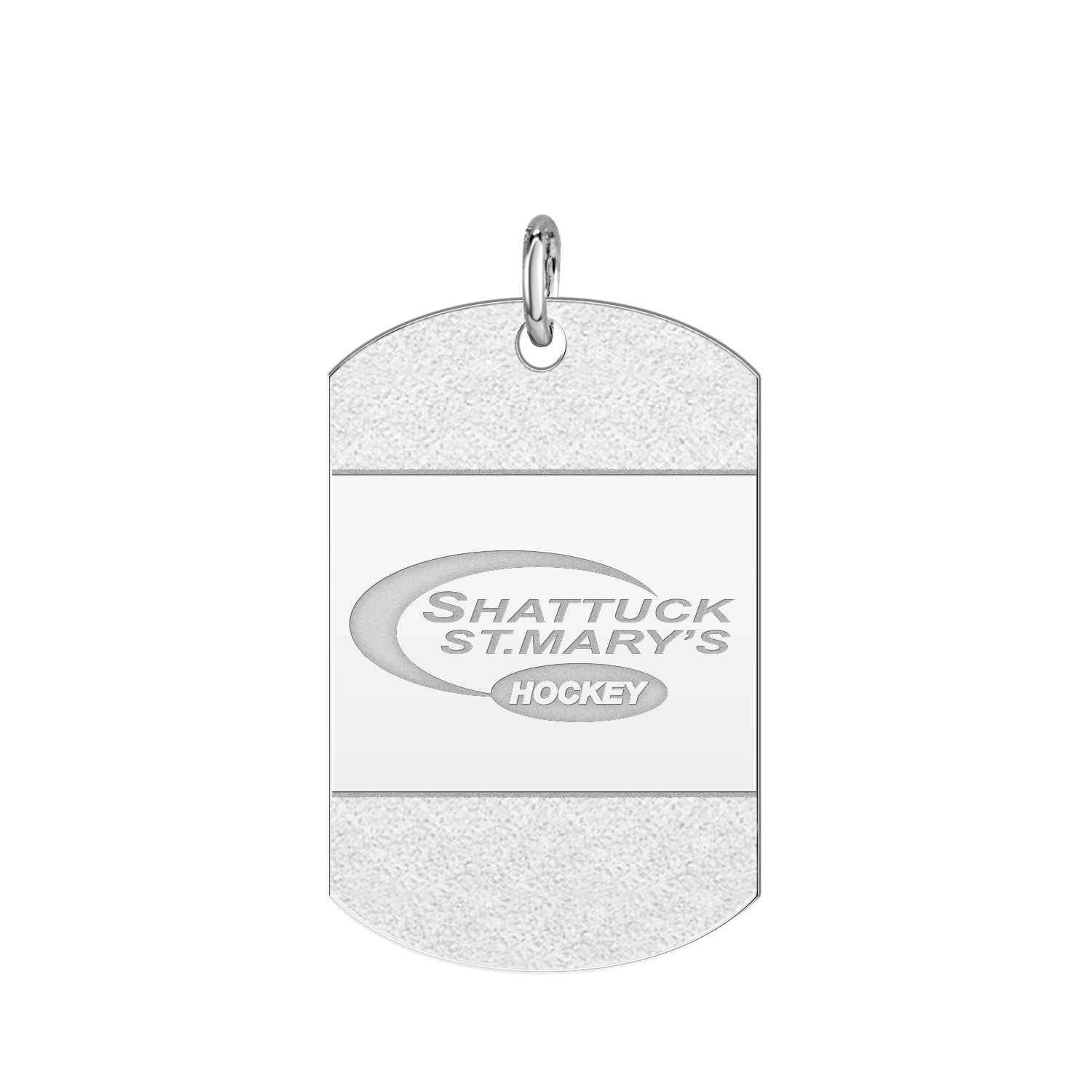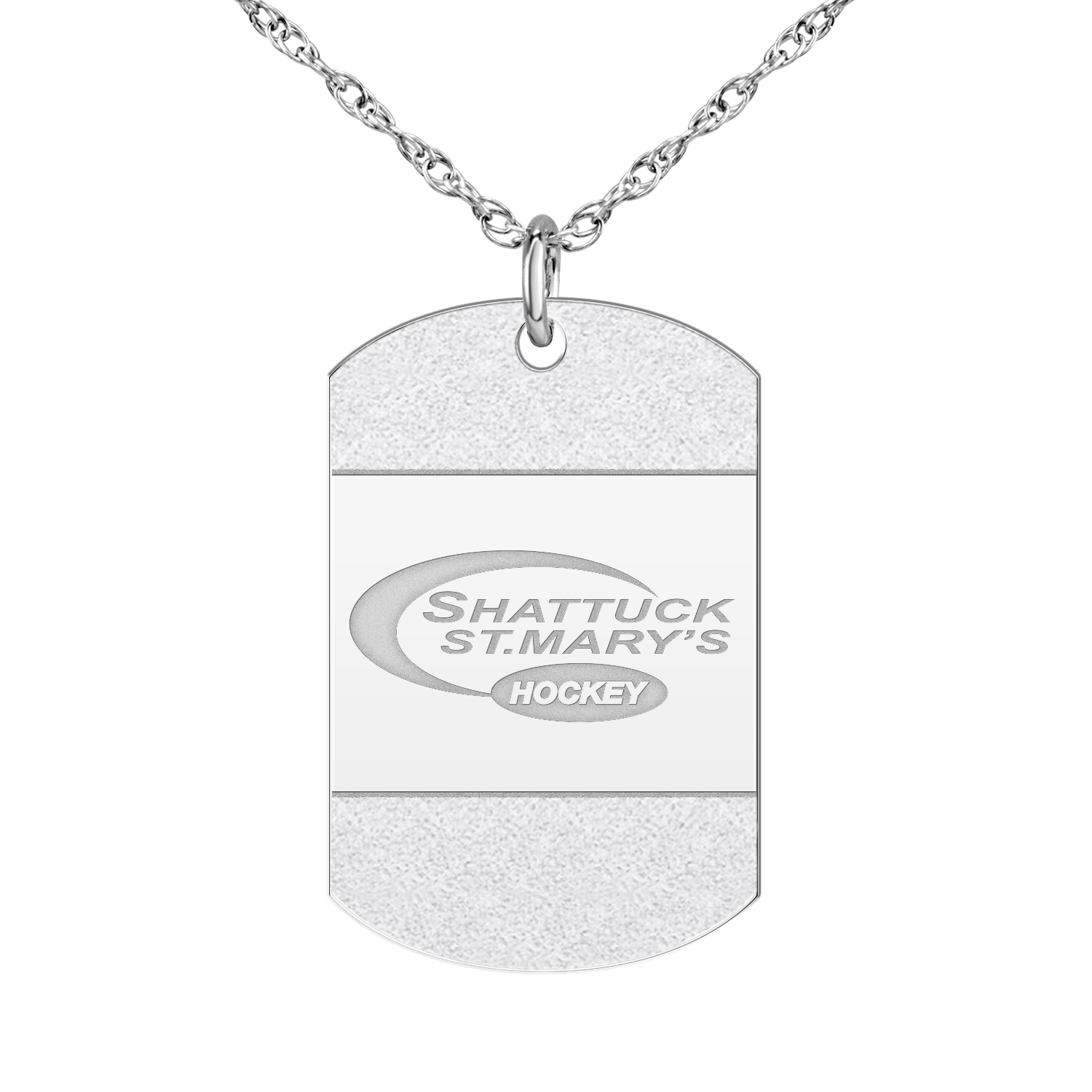Beautifully finished with an "iced" accent on the front, personalize the high polish back of this tag with your name, title, player number etc.! Make it yours. Up to 4 lines of engraving on the back.
